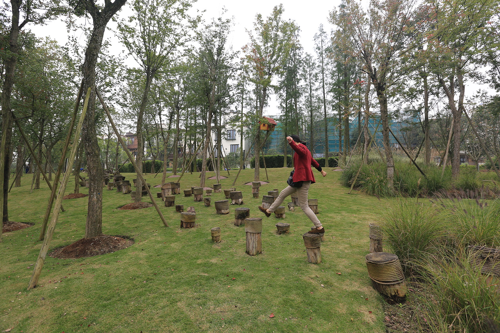 叢林幻想為全齡兒童提供一個自由探索的綜合活動空間,兒童可以在林中發(fā)現(xiàn)趣味的繩索吊橋,童話中的矮人、蘑菇、緩慢行走的迷你小象群等各種奇異事物。