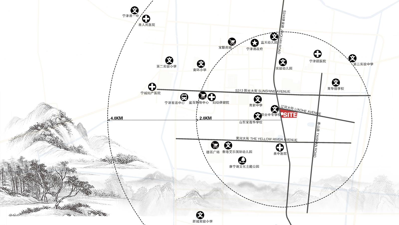 德州市位于黃河下游,山東省的北大門。歷史上,德州就是京杭大運河的一個重要碼頭,自古有“九達天衢”、“神京門戶”之稱,京滬鐵路、石德鐵路和德龍煙鐵路在此交匯,是華東、華北重要的交通樞紐。項目位于德州核心區域,正門北面遼河大街,中正巍峨,氣勢雄奇,得天獨厚?;诘轮莸赜蚝晚椖慷ㄎ?,我們把北方園林的莊嚴威儀與南方園林的風雅婉約相結合。